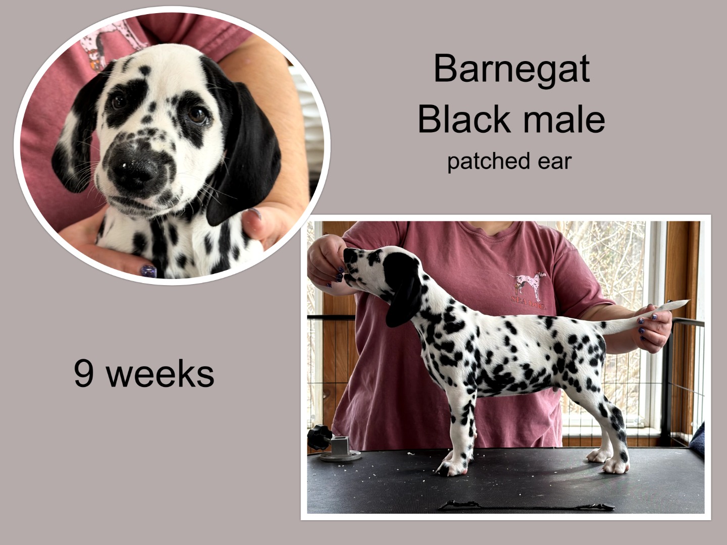One very sweet male patched puppy is available for pick up in Maryland. Has been BAER tested and hears bilaterally. Is microchipped and has received first two puppy vaccines.